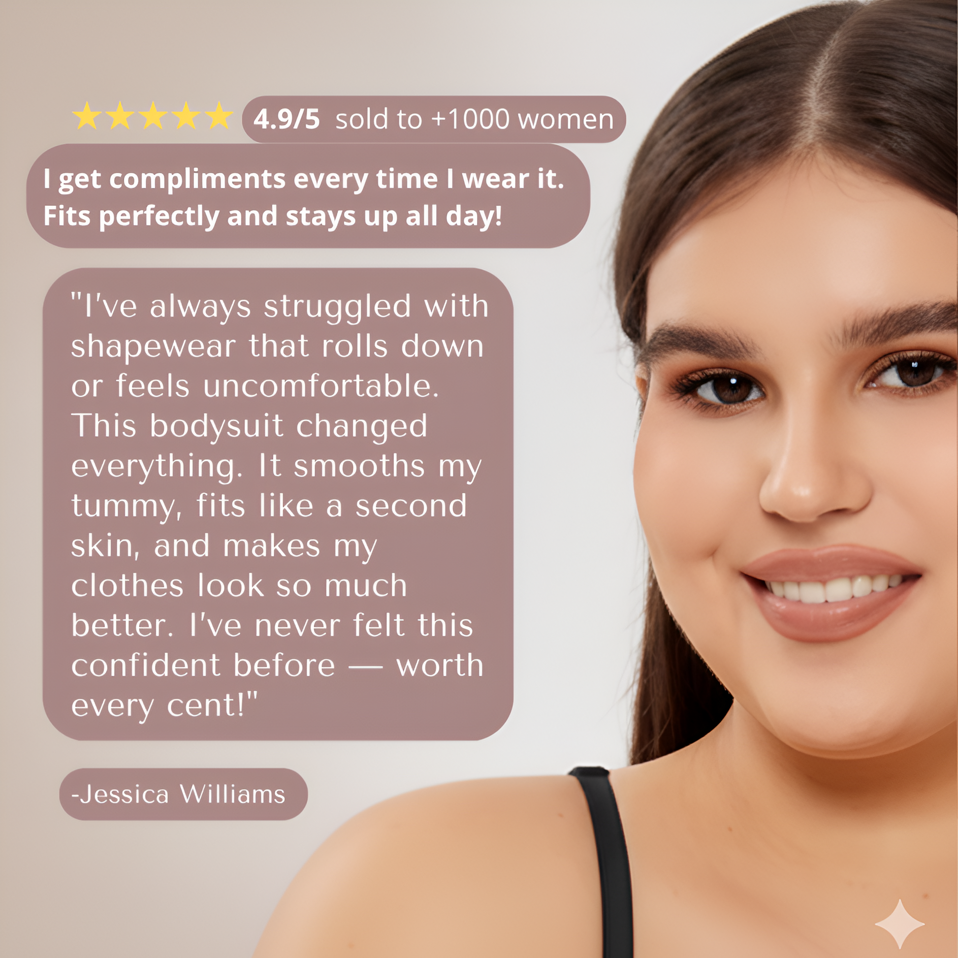 Based on an independent feedback study of 100 women after 30 days of daily wear using the Queen Sculpt Bodysuit. Results may vary.
